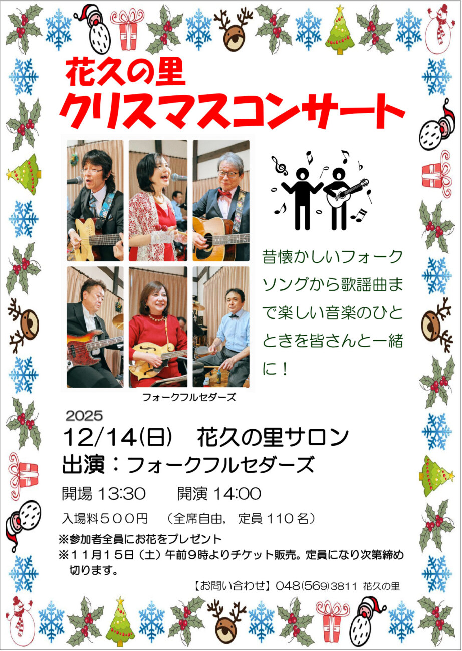 花久の里でクリスマスコンサートを開催いたします!