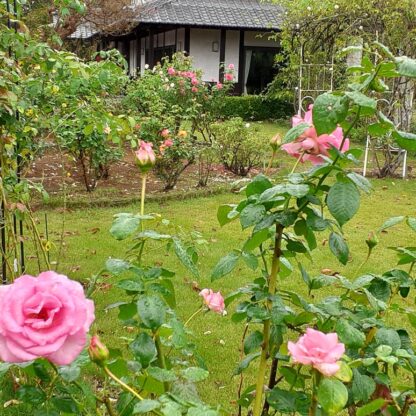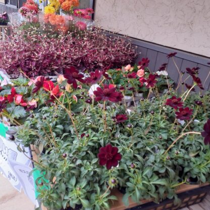 花久の里秋バラのようす(2025.10.25) マチルダも雨に濡れています 黒真珠です ディズニーのバラのシリーズから「スマイルハニーローズ」 サロンをバックに「エスメラルダ」 庭園に「秋明菊」や「ジニア」も咲いています 直売場には秋の草花「チョコレートコスモス」などたくさん入荷しました ただ今、花久の里秋のバラ祭り(10月18日から10月26日)を開催しておりますが、バラの開花は遅れ気味です。今日は朝から小雨が降っています。雨粒がバラについて落ち着いた様子で咲いています。ここのところ一気に気温が下がってきましたがバラは11月上旬ころまで楽しめそうです。皆様のお越しをお待ちしております。 今のバラ園のようすをフオトギャラリーに掲載いたしましたのでご覧ください。 フォトギャラリー名 花久の里秋バラのようす(2025.10.25)